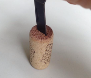 חוצים פקק שעם באמצע בעזרת סכין חדה (עדיפות סכין יפנית) בעומק של עד חצי מהפקק, ועובי של הדף.